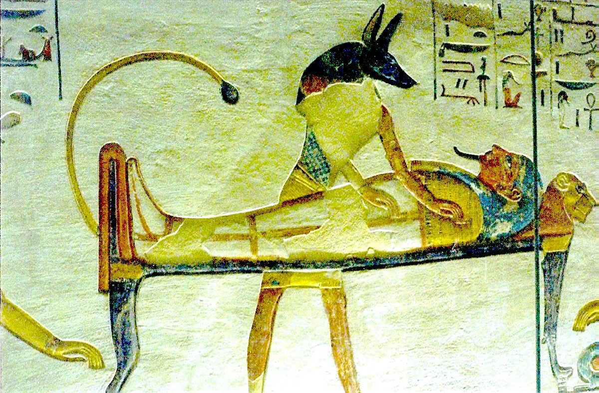 Certaines traditions ont survécu jusqu’à nos jours, comme la commémoration des quarante jours après le décès. Durant cette période, le corps était plongé dans une solution saline avant d’être traité avec des résines aromatiques et enveloppé de lin. Craignant que l’âme ne reconnaisse pas le corps, les Égyptiens plaçaient au-dessus de la momie un portrait peint, puis des statues de bois ou de pierre. L’or, censé prolonger la vie, accompagnait souvent le défunt.